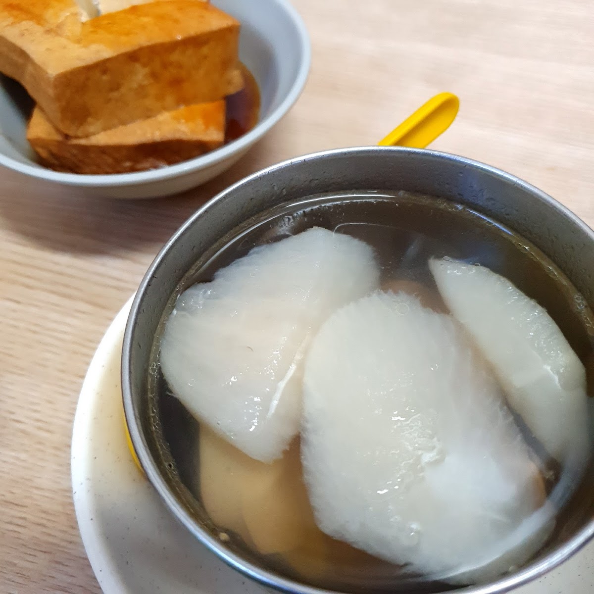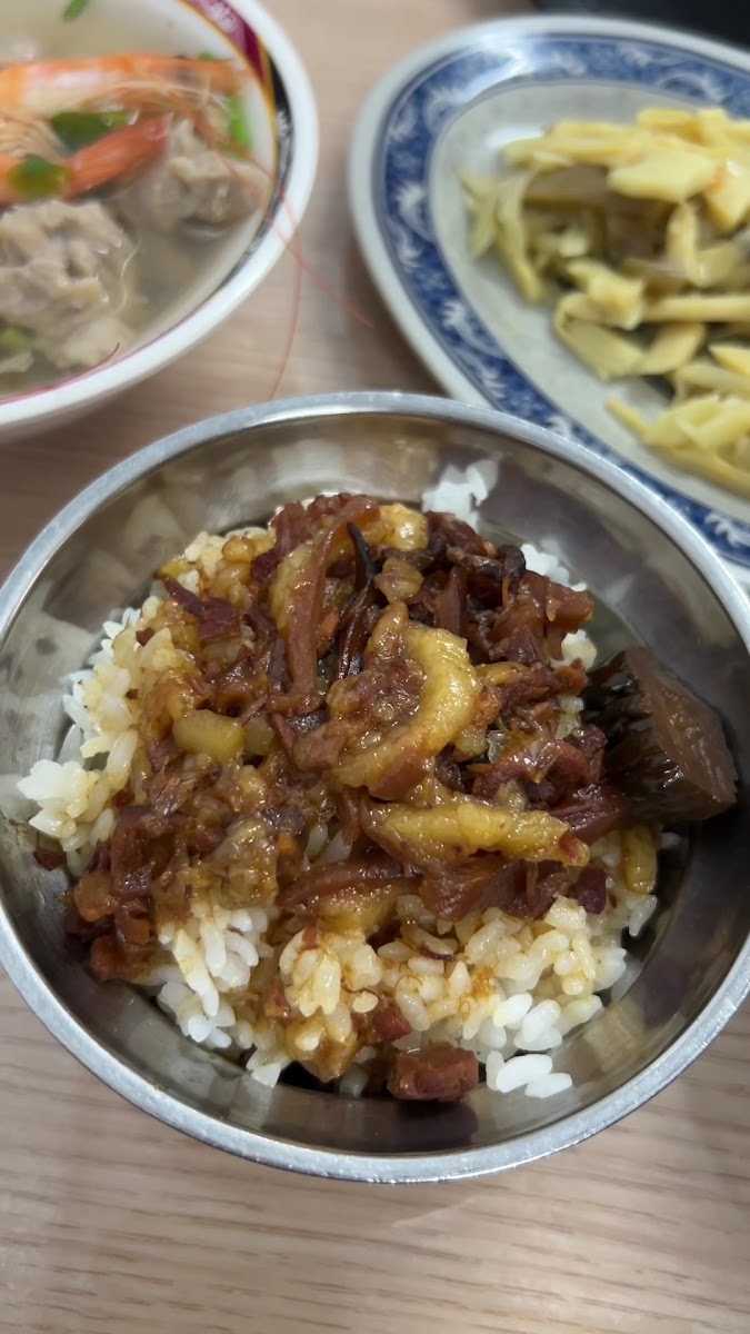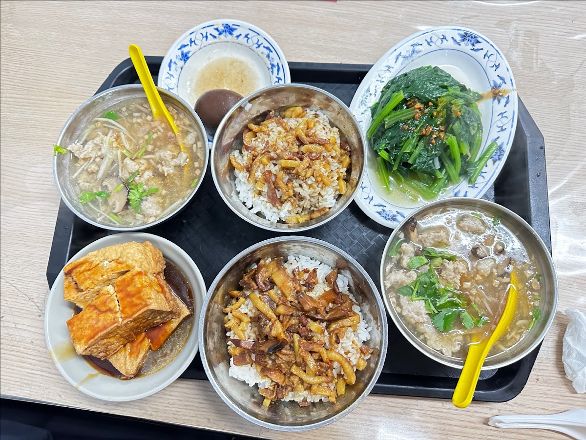 The restaurant specializes in several comforting soup options—like pork thick soup (肉羹湯), pineapple bitter melon chicken soup (鳳梨苦瓜雞湯), and ginseng chicken soup (人參雞湯)—alongside their signature braised pork rice (滷肉飯) and other rice dishes. Portions are modest yet enough to leave you comfortably full without weighing you down. The star dish here is the braised pork rice: slow-braised pork belly that is tender and rich with five-spice flavors, served over fragrant rice, often paired with a perfectly seasoned braised duck egg and some blanched greens for balance.